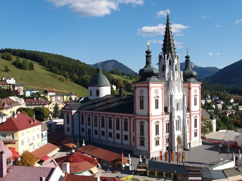 Mariazell vasútállomásán látható a világ legrégibb gőzvillamosa. A korhűen helyreállított kocsik a 19. század hangulatát idézik a rövid utazás során.