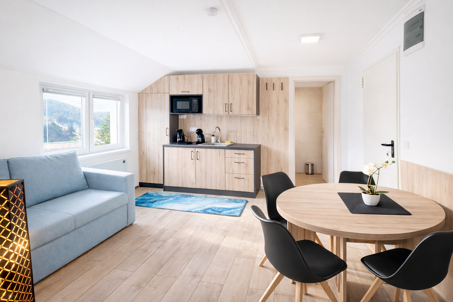 Minden apartmanunk egyedi hangulatot kínál, akár a festői hegyekre, akár az utcára nyílik az ablak.